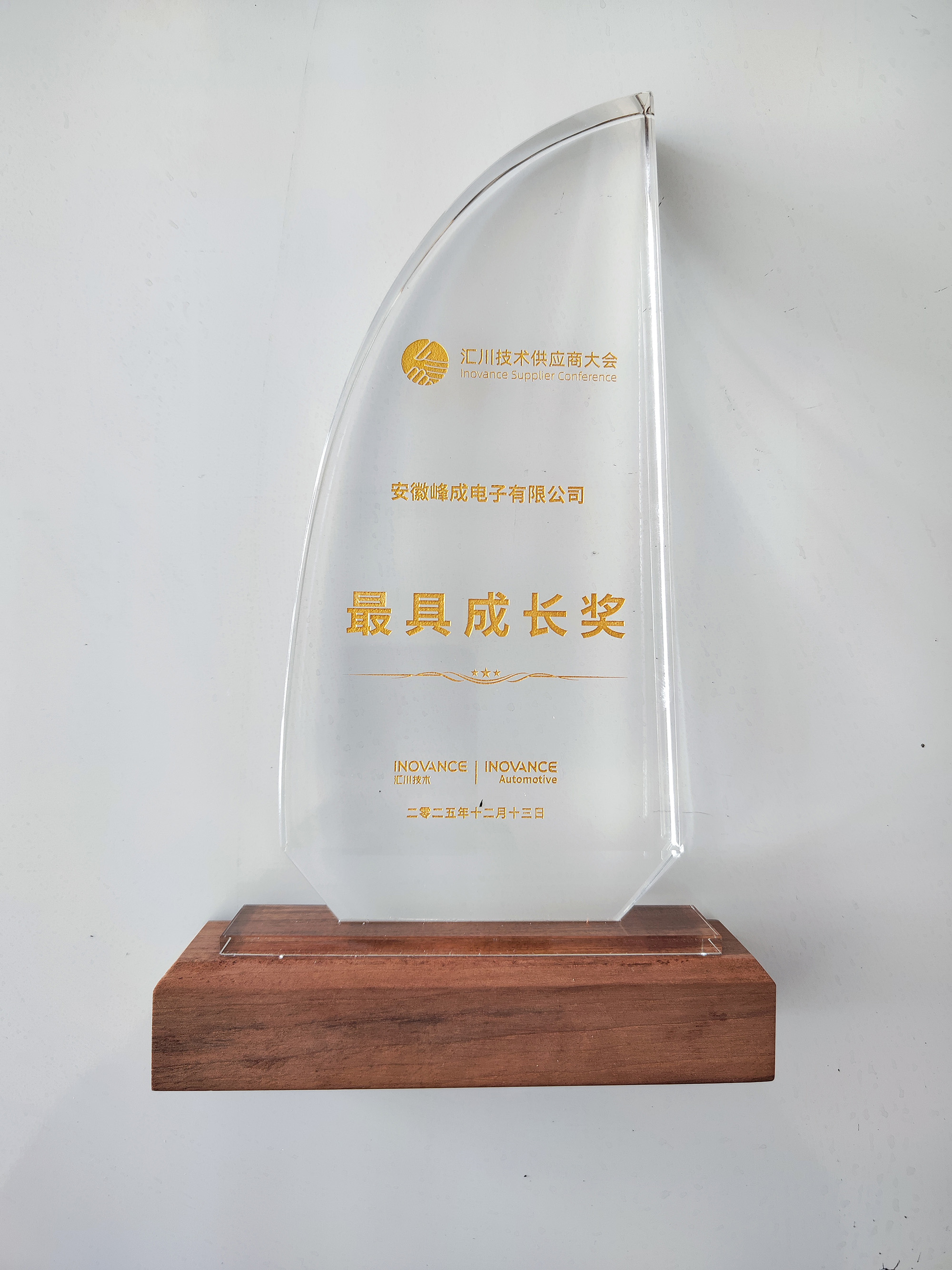 匯川聯(lián)合動力是專注新能源汽車電驅(qū)與電源系統(tǒng)研發(fā)的國內(nèi)龍頭企業(yè)之一。“最具成長獎”旨在表彰在合作過程中展現(xiàn)出強勁發(fā)展勢頭、持續(xù)創(chuàng)新能力與卓越服務水平的合作伙伴。此次獲獎,不僅是匯川技術(shù)對雙方過往合作成果的肯定,更是對峰成公司綜合實力與成長潛力的高度認可。面向未來,峰成公司將繼續(xù)堅持創(chuàng)新驅(qū)動,加強新品研發(fā),提升品質(zhì)服務,推進雙方互利合作再上新臺階,助力新能源汽車電子產(chǎn)業(yè)的高質(zhì)量發(fā)展。